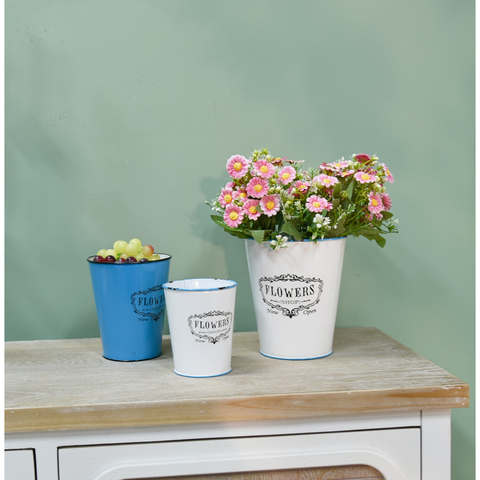 소박한 흰색 철 금속 다육 식물 화분 핸들 실내 장식 디자인 정원 홈 바닥 심기 사용 3 개의 맞춤형 세트